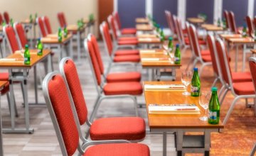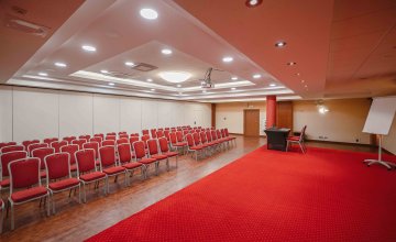 For training groups, there is a large business hall with 200 seats which can be divided into 2 smaller ones - with 110 and 70 seats respectively. The hall is equipped with modern and professional multimedia equipment, flipchart, screen and TV. At your disposal, there is also a rostrum, sound system (wired and wireless microphones) as well as professional technical service. At the entrance to the hall, there is a spacious foyer, perfect for mini exhibitions and fairs.